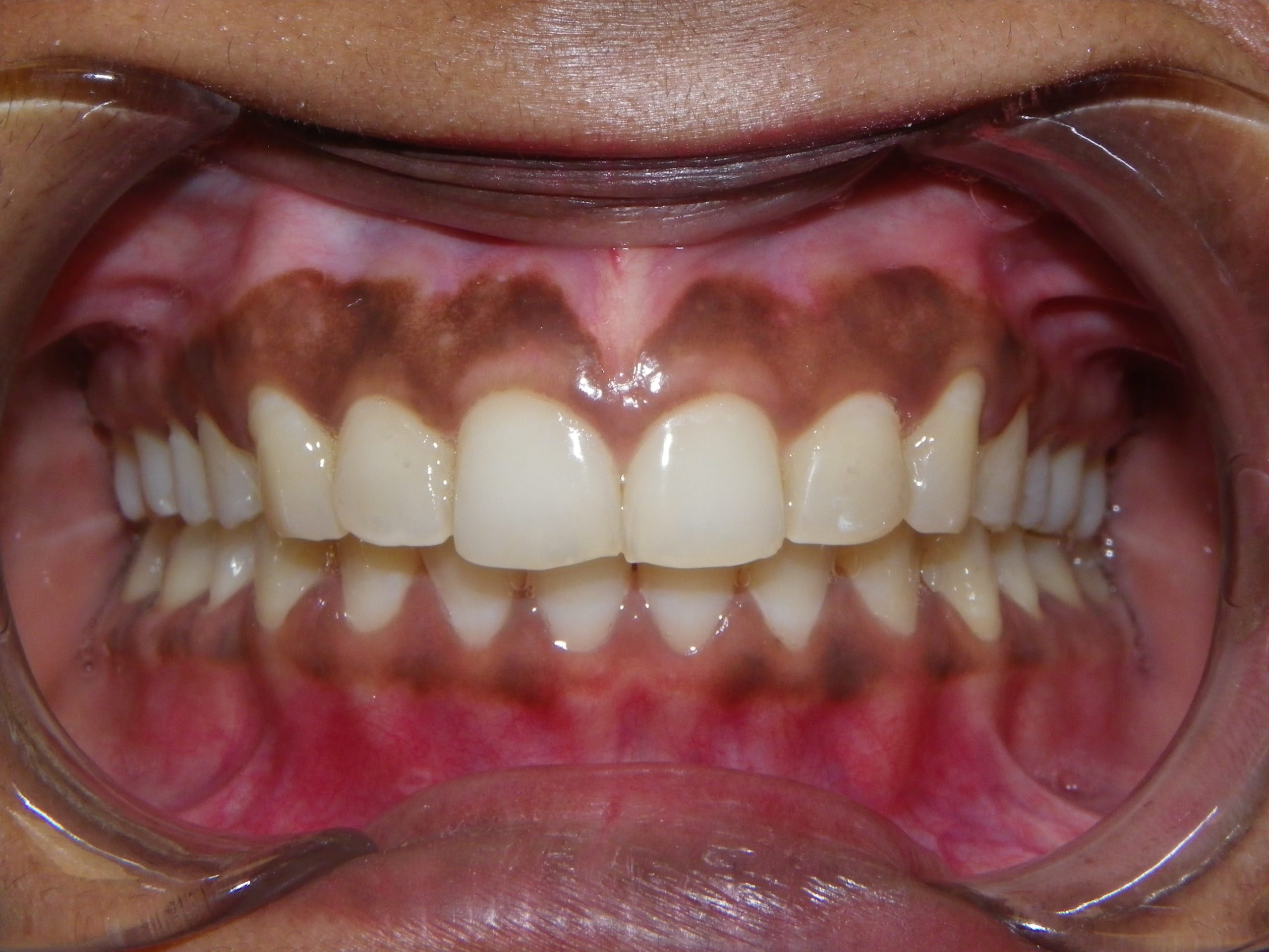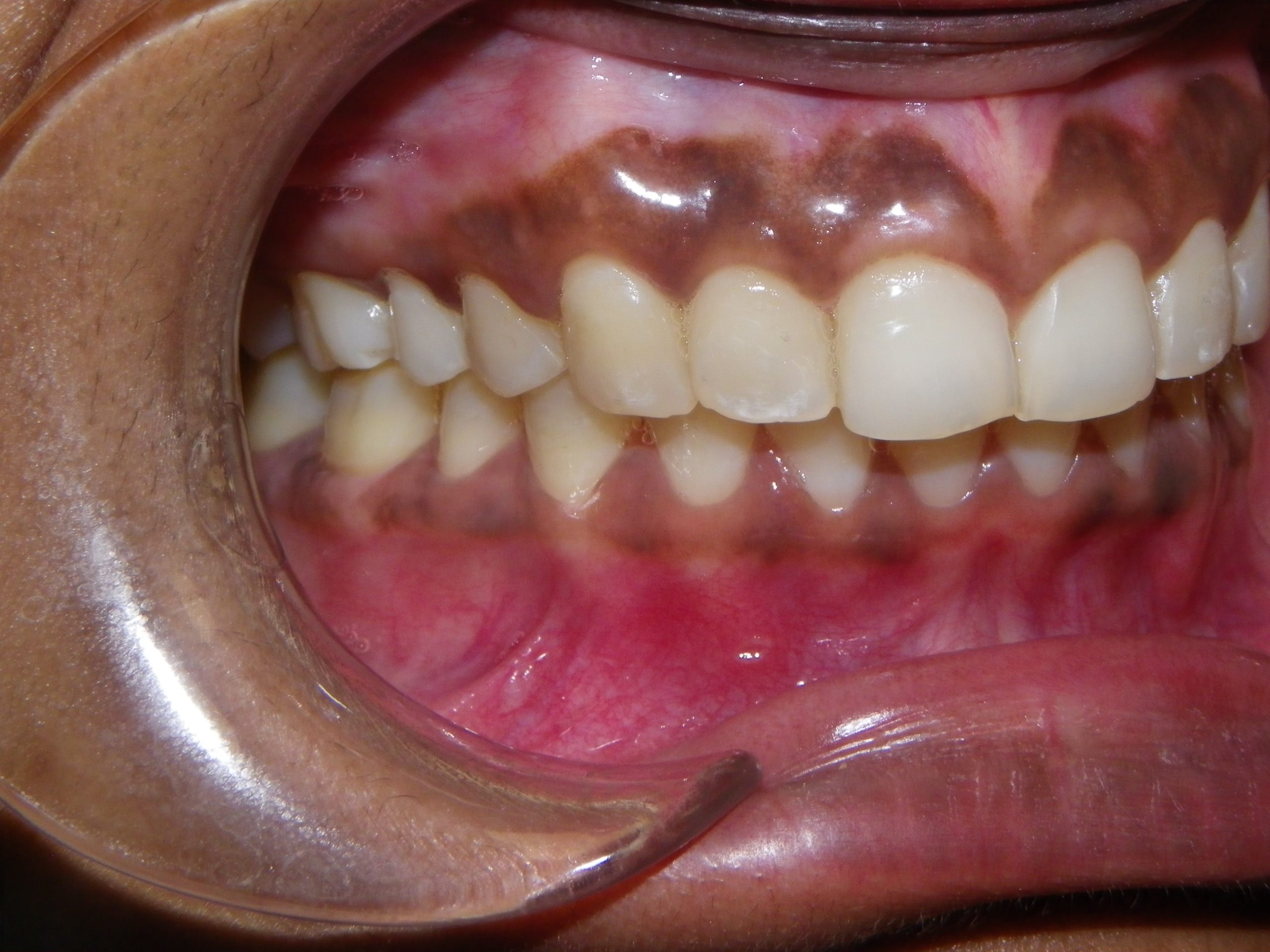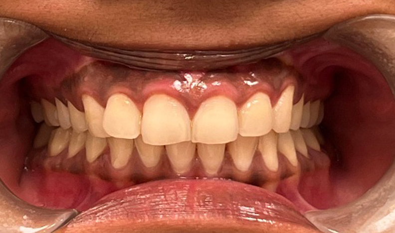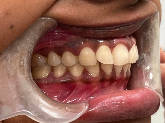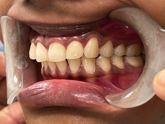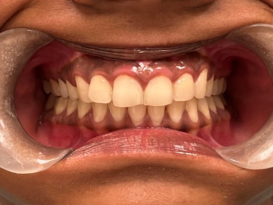 While this patient’s teeth were not terribly misaligned overall, she very much disliked the crookedness of her upper front teeth. A simple sequence of clear aligners from Invisalign over seven months was enough to give her the straightening she was seeking, and afterwards she was given clear retainers for nighttime wear to keep the teeth in their final positions. Oftentimes what seems to be minor misalignment of teeth to some is very bothersome to others, and we won’t judge what people’s personal aesthetic desires are. Our job is to give people the teeth that they need in order to be confident with their smiles.