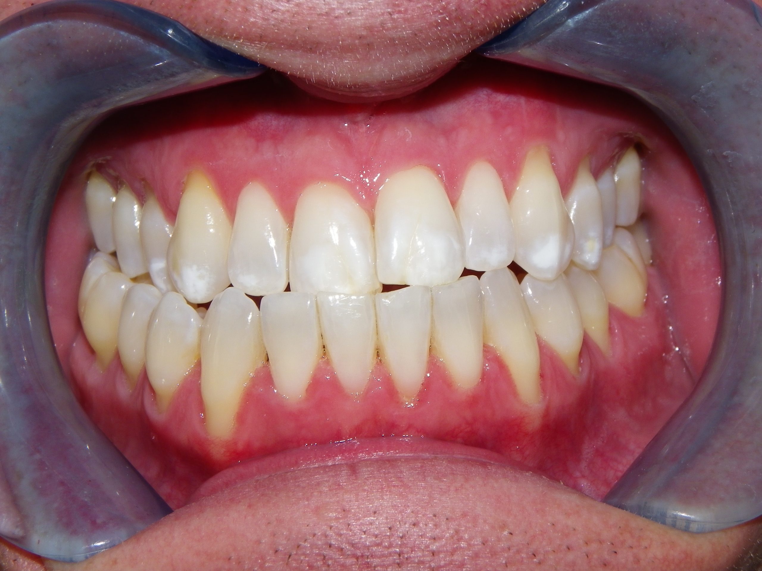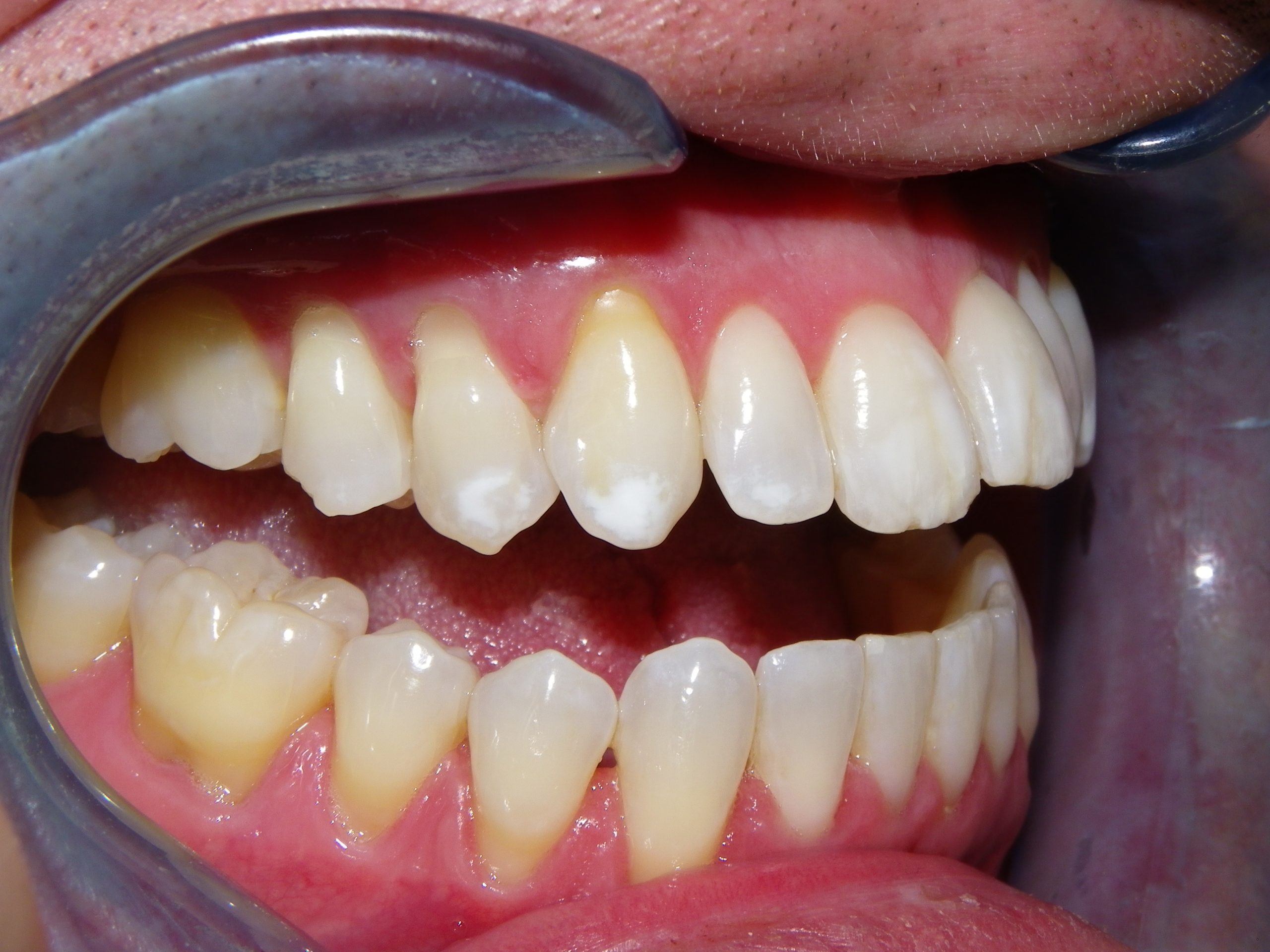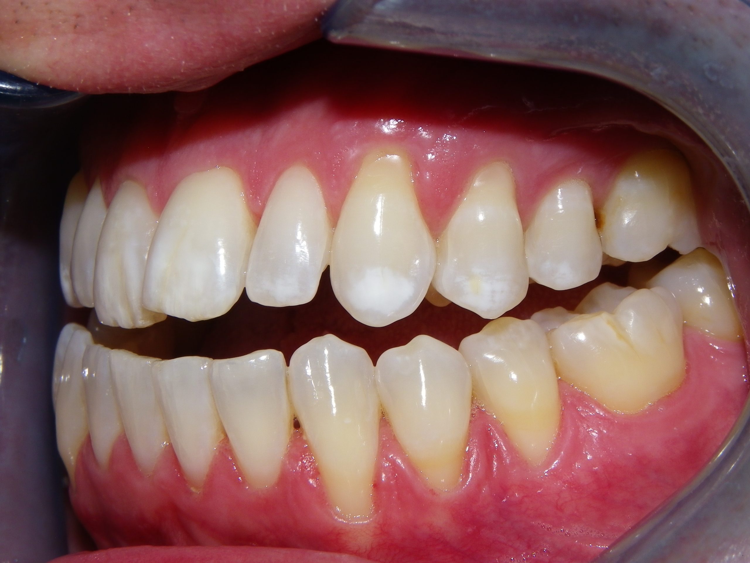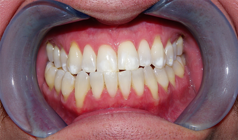 Since childhood, this patient had teeth discoloured with brownish and flat white patches that caused embarrassment when smiling. These are not defects that can whiten, but can be responsive to microabrasion and resin infiltration. In one appointment of approximately 1.5h and no local anesthetic, Opalustre by Ultradent (microabrasion) and ICON by DMG America (resin infiltration) was used to remove the brown and white spots and restore the natural translucency of the enamel.